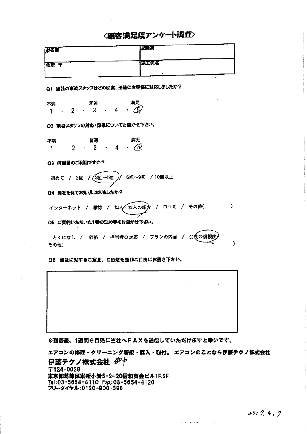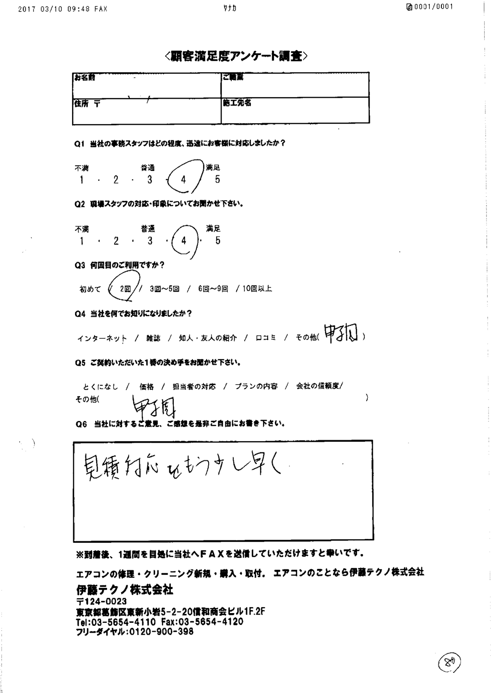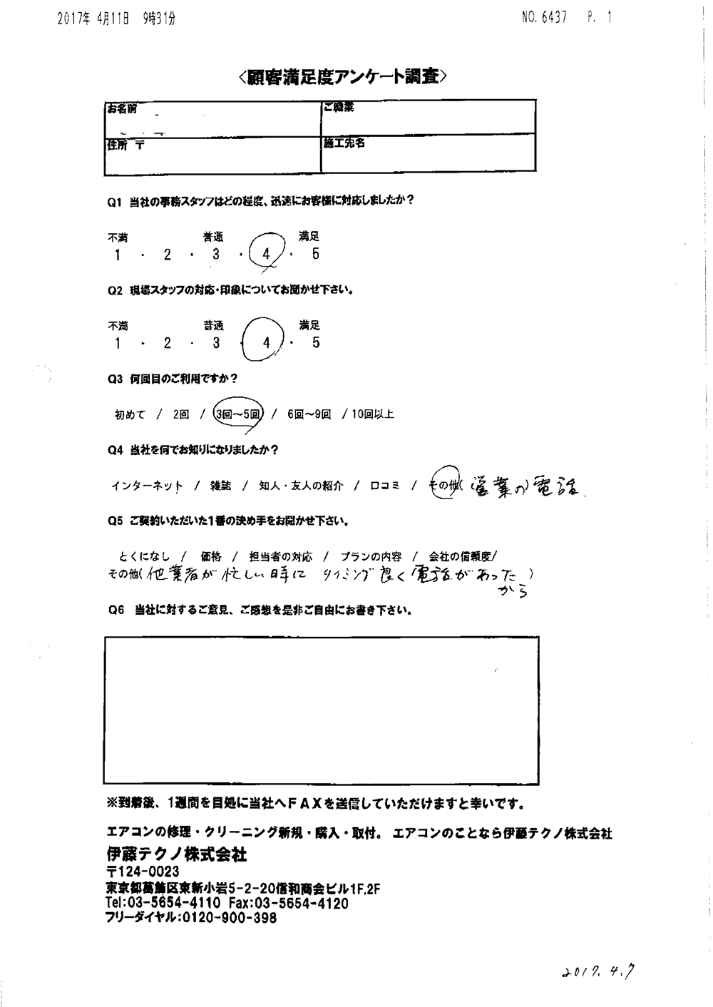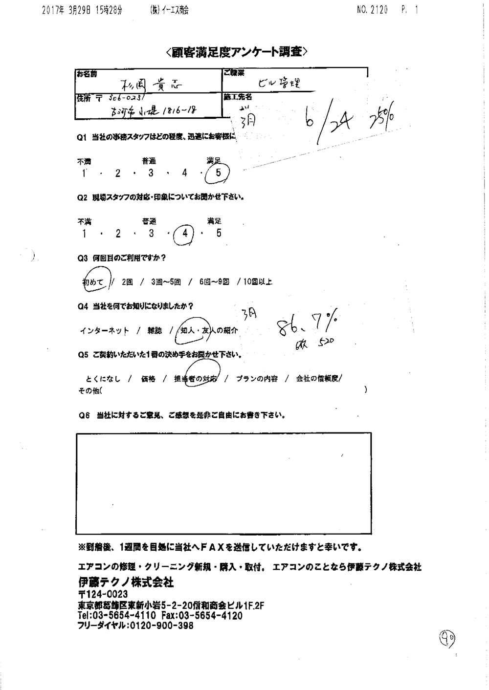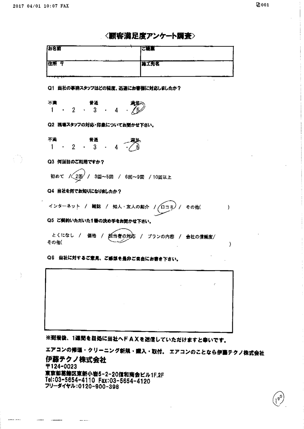 当方現地に立ち合いなしで無事打ち合わせ通りに完了したこと感謝しています。当方の要望に対応してくれたこと満足しております。ありがとうございました。