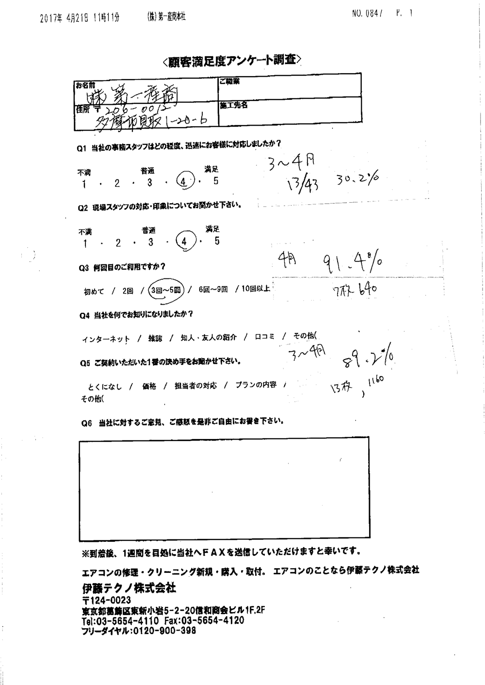 現在のお客様喜び度 89.7%(年間平均目標 80%)